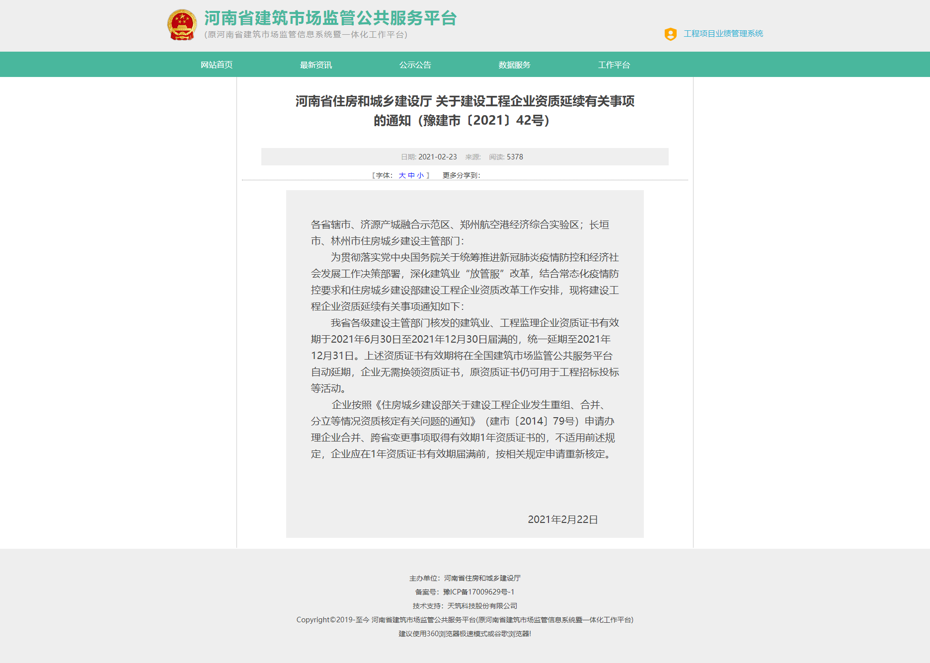 最新發(fā)布丨河南省住房和城鄉(xiāng)建設(shè)廳關(guān)于建設(shè)工程企業(yè)資質(zhì)延續(xù)有關(guān)事項(xiàng)的通知